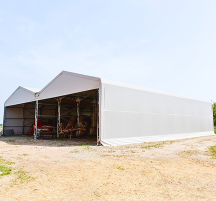 In principe zijn al onze tentstallen geschikt voor vaste mestopslag. Een overweging is te kiezen voor een vergunningsvrije* tentstal met een nokhoogte tot maximaal 5 meter.